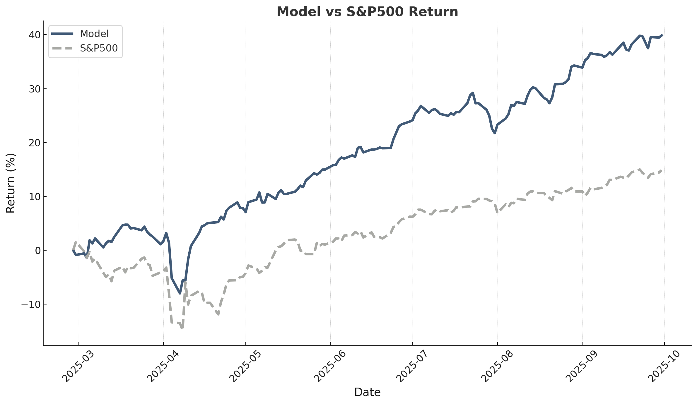 The model portfolio has delivered a 4.2% return in September and 39.9% since inception 7 months ago, outperforming the S&P 500 by 25% in that time frame and beating it 6 months out of 7 months.