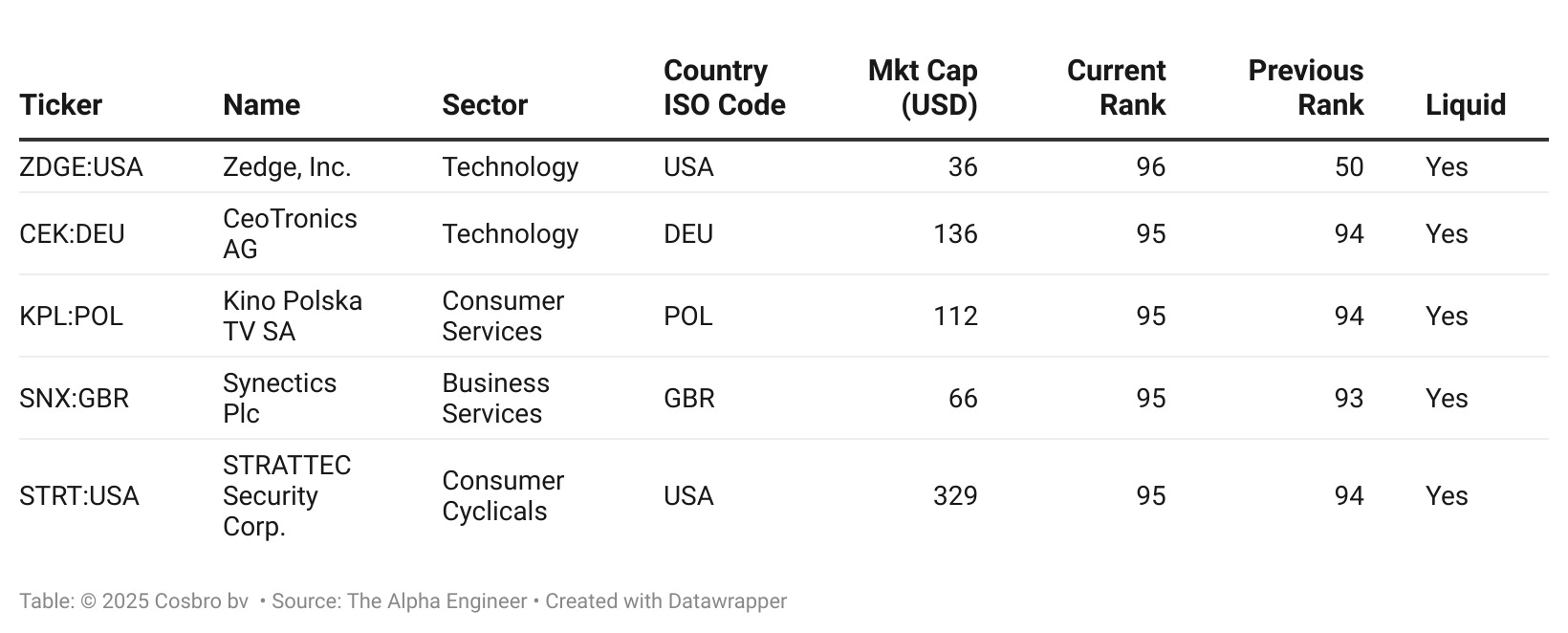 The Alpha Engineer Stock Ranking of +3700 stocks is provided weekly to paid subscribers. Stocks entering the top 5% of the ranking are provided to all subscribers.