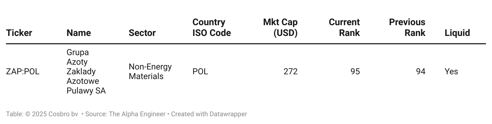 The Alpha Engineer Stock Ranking of +3700 stocks is provided weekly to paid subscribers. Stocks entering the top 5% of the ranking are provided to all subscribers.