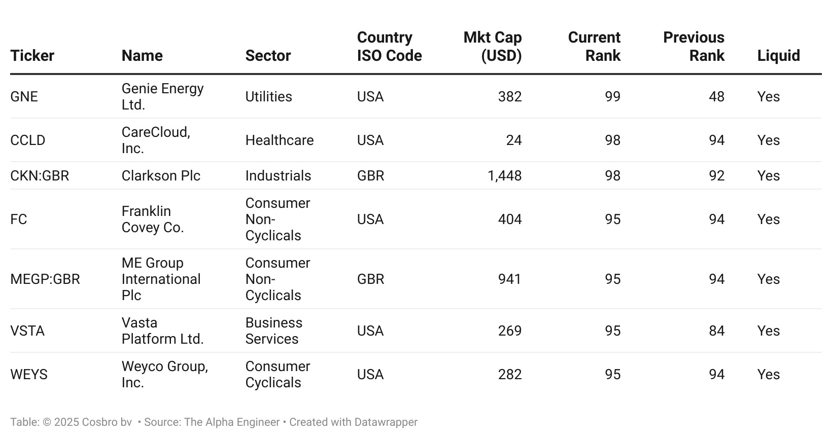 The Alpha Engineer Stock Ranking of +3700 stocks is provided weekly to paid subscribers. Stocks entering the top 5% of the ranking are provided to all subscribers.