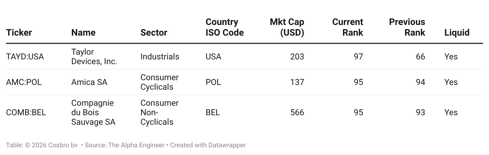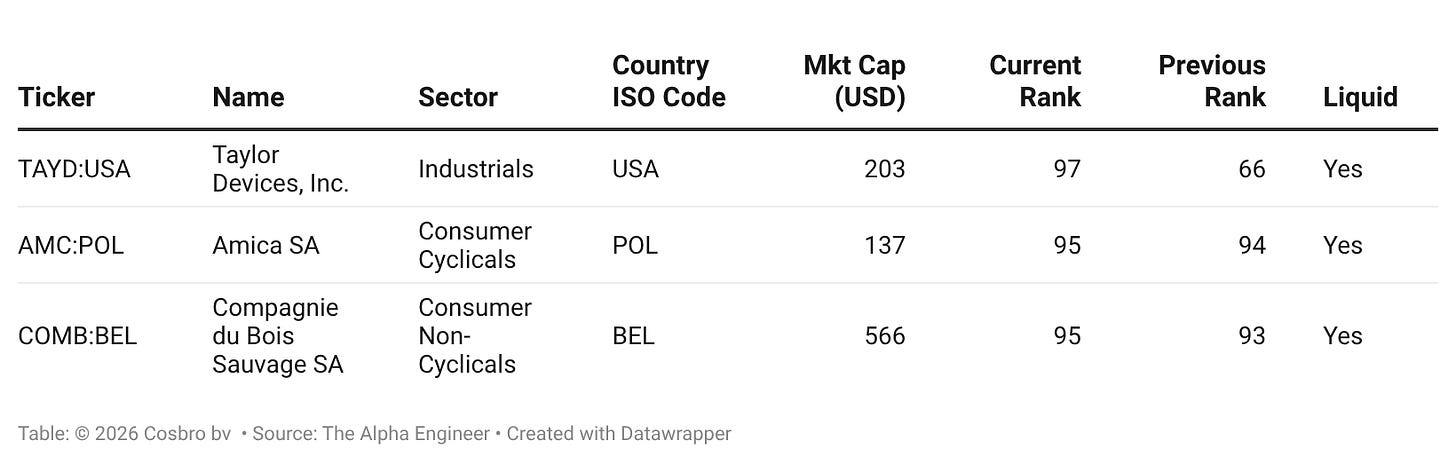 The Alpha Engineer Stock Ranking of +3700 stocks is provided weekly to paid subscribers. Stocks entering the top 5% of the ranking are provided to all subscribers.