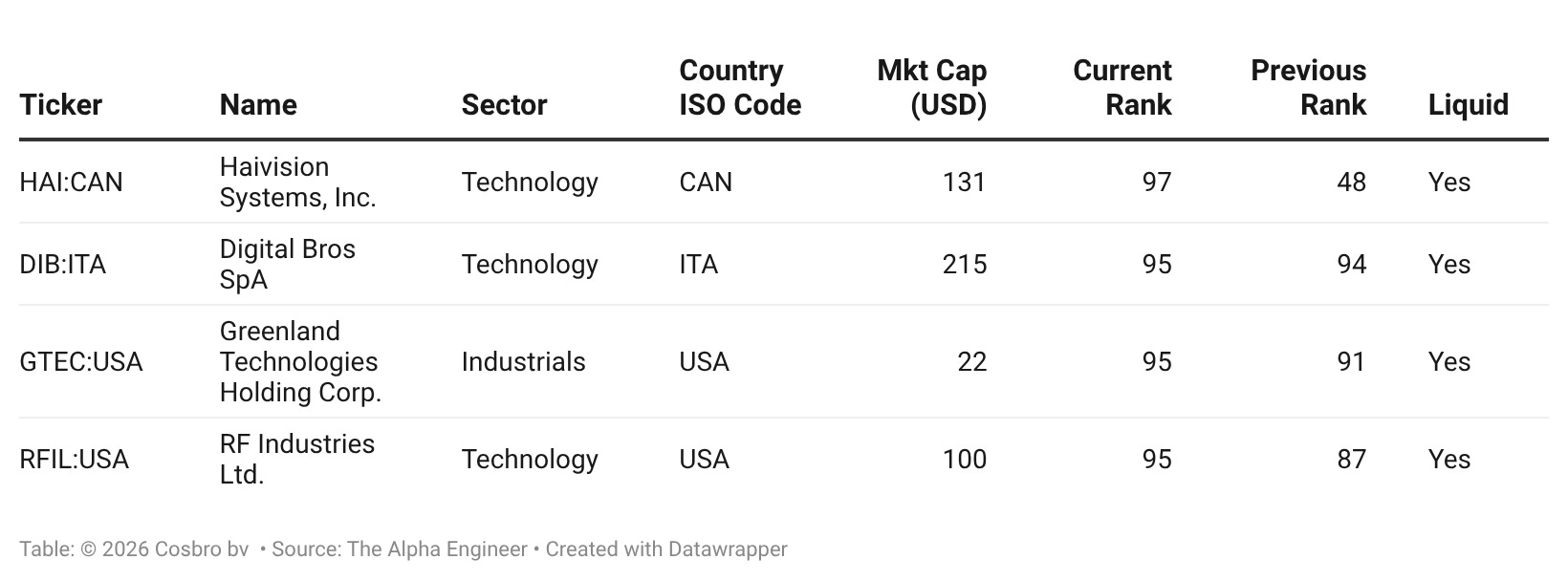 The Alpha Engineer Stock Ranking of +3700 stocks is provided weekly to paid subscribers. Stocks entering the top 5% of the ranking are provided to all subscribers.
